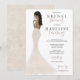 La elegante invitación a la ducha nupcial incluye a la novia para estar en un vestido boda de champán. Elige el color del cabello y el tono de la piel para que se parezca a tu novia. En la parte posterior de la invitación se pueden agregar elementos de encaje blanco e información de texto adicional si es necesario.