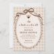 Celebremos que la novia esté con esta invitación a una novia en Tini Bit Gingham Martini. Diseñado con una moda acuarela espresso martini, granos de café, un vintage marco de arco dibujado a mano y un fondo de gingham beige, este tema caprichoso y elegante le da un encanto acogedor a su celebración. Perfecto para una ducha nupcial de otoño o un brunch martini con temática de novia, este elegante patrón es fácil de personalizar.