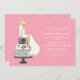 Las invitaciones divertidas y de moda incluyen un hermoso ilustracion de una novia feliz sentada encima de un pastel de boda. Diseño perfecto para duchas de novias, fiestas de soltera, etc.