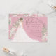 La invitación a la fiesta de té Bougie bridal con ducha de novia incluye una novia vestida con un vestido de boda de flores blancas y colocada en una arcada con flores de color acuático. Hay varias opciones disponibles para el pelo y el tono de piel de la novia.
