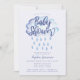 Invitaciones a la ducha de bebé Baby Shower con nubes azules y lluvias. Creado con tipografía de escritura caprichosa, una nube y gotas de lluvia con textura acuarela .En nuestra tienda de Metro-Events on Zazzle podrá obtener fotos y decoraciones adicionales coordinadas para la ducha de bebé.
