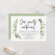 Tarjeta de invitación de fuga de novios con tema de jardín de verano con hojas verdes, guión negro moderno (Nuestra fiesta continúa). Es perfecta para su recepción de fuga de novios / fiesta de celebración después de la boda. Agregue sus detalles en fuente / letra negra a juego.