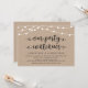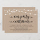 Hermosas Luces de Cadena de Granja Rústica Moderna, Fuente de letra negra en fondo de Kraft marrón, Anuncio de Huida de Boda, Tarjeta de invitación (Nuestra Fiesta Continúa). Esto es perfecto para la recepción de su boda y la fiesta de celebración después de la boda. Agregue sus detalles en la fuente / letra coincidente.