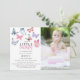 Celebra el primer cumpleaños de tu pequeña mariposa con nuestra encantadora Invitación de cumpleaños de mariposa para niños. Con una foto, una hermosa variedad de mariposas de acuarela y una plantilla moderna y elegante, esta invitación es la forma perfecta de llevar sonrisas a los rostros de tus invitados. Únete a nosotros para pasar un buen rato floreciendo mientras celebramos este hito especial en la vida de nuestro pequeño. Deja que las mariposas te guíen a una fiesta inolvidable que iluminará el día de todos.