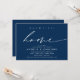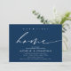 Nuestra primera casa, tarjeta de invitación para fiestas de limpieza. ¿Planea un fiesta de limpieza para celebrar su nuevo hogar con su familia y amigos? Invite a sus huéspedes con esta hermosa y perfecta caligrafía elegante, en una carta de invitación a la fiesta de bienvenida con temática azul marino. Añade tus detalles. Teesha Derrick