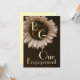 Este diseño con su girasol poner crema en un fondo del chocolate es una manera elegante y maravillosamente floral de manejar sus invitaciones del compromiso. Todo el texto es adaptable. Usted puede jugar con diversos papeles para conseguir diversos efectos. Recomiendo el papel metálico hued o de plata del hielo que da a su invitación un efecto trémulo especial. ¡Disfrute de su día especial!