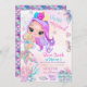 Magnífica invitación de cumpleaños de sirena con acentos oceánicos. Perfecto para un fiesta de piscina u otro evento de verano. Invite a amigos y familiares a celebrar su día especial con esta adorable invitación de cumpleaños con temática de sirena.