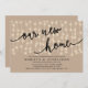 Nuestra nueva casa, tarjeta de invitación para fiesta de limpieza en rústico estilo rústico moderno de casa de campo marrón kraft luces tema. ¿Planea un fiesta de limpieza para celebrar su nuevo hogar con su familia y amigos? Invite a sus huéspedes con esta tarjeta de invitación para una fiesta de bienvenida.