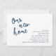 Nuestra nueva casa, la carta de invitación a la fiesta de la casa con un moderno y rústico tema azul marino. ¿Planea un fiesta de limpieza para celebrar su nuevo hogar con su familia y amigos? Invite a sus huéspedes con esta tarjeta de invitación para una fiesta de bienvenida.