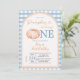 Naranja lindo Calabaza Invitación a primer cumpleaños Boho elegante Nuestra calabaza está cumpliendo un cumpleaños Invitación Blue Gingham