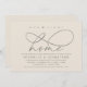 Nuestra primera casa, tarjeta de invitación para fiestas de limpieza. ¿Planea un fiesta de limpieza para celebrar su nuevo hogar con su familia y amigos? Invite a sus huéspedes con esta tarjeta de invitación para una fiesta de bienvenida, en un bello y perfecto guión rústico, con temática gris oscuro y crema. Teesha Derrick