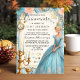 Presentar su quinceañera con un estilo deslumbrante con la invitación a la Quinceañera azul del nuevo hielo de marfil de marfil! Con una luminosa mezcla de marfil, cielo helado y tonos azul claro, acentuados por detalles de oro radiante, este diseño exuda elegancia y elegancia. Perfecto para anunciar un hito tan único como es, esta invitación seguramente cautivará. ¡Ordene ahora iluminar su día especial con elegancia y encanto!