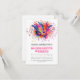 Invitación del itinerario del fin de semana de soltera de personalizable de Nueva Orleans. Con una colorida máscara de máscaras de la mascarada del Mardi Gras y una impresión purpurina sobre un fondo blanco. Al revés, hay una plantilla para que usted personalizar con sus propios detalles de itinerario.