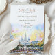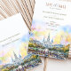 Anuncie a su boda con estilo con esta tarjeta "Save the Date" que incluye un encantador ilustracion acuático de Jackson Square en Nueva Orleans. El diseño cautiva la emblemática catedral de St. Louis, rodeada de exuberante vegetación, carrozas tiradas por caballos y vibrantes cielos pastel que mezclan tonos melocotón, lavanda y azul. El guión elegante y las fuentes modernas complementan la escena artística, creando un ambiente sofisticado pero caprichoso. Perfecto para las parejas que planean un boda romántico en el histórico Barrio Francés, esta invitación refleja la animada cultura y la belleza intemporal de Nueva Orleans.