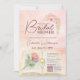Ayude a la novia a celebrar el comienzo de su nuevo capítulo con esta hermosa invitación a bañarse en una hermosa colcha floral de color rosa. Presenta una hermosa acuarela de un anillo de compromiso equilibrado en las páginas de un libro abierto formando una sombra en forma de corazón. La tipografía incluye letras de guiones modernas y hay espacio para todos los detalles incluyendo rsvp y un código qr de personalizable para el registro de regalos. Manera encantadora de mostrar amor y apoyo.