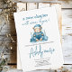 Celebra la llegada de tu pequeño con esta adorable invitación de "New Chapter Teddy Blue Boy Baby Shower". Con un encantador diseño de osito de peluche en suaves tonos azules, esta invitación marca el tono perfecto para una ducha de bebé reconfortante. El encantador personaje del oso, rodeado de detalles juguetones, evoca una sensación de calidez y emoción, lo que lo convierte en una elección ideal para la ducha de bebé de un niño. Con sus colores suaves y su temática acogedora, esta invitación a la ducha de oso es una forma maravillosa de recibir a los huéspedes y marcar el inicio de un nuevo y hermoso capítulo en tu vida.