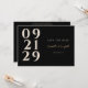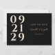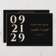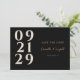 Haga que su invitación de compromiso resalte con este moderno y elegante diseño Contemporáneo Save the Date. Con una tipografía numérica audaz en marfil sobre un elegante fondo negro, con un toque de oro que resalta los nombres de la pareja para un toque lujoso. El diseño minimalista y contemporáneo en la parte delantera garantiza que sus huéspedes estén informados de su próximo boda, mientras que en la parte trasera encontrará más detalles y un cómodo código QR. Esto ahorra la invitación a la cita es perfecta para parejas que buscan una manera elegante y sofisticada de anunciar su día especial.