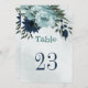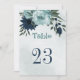 Tarjeta de número único con flores azules y navales polvorientas y hojas verdes. PARA OBTENER MÁS PRODUCTOS COINCIDENTES, haga clic en la colección superior o póngase en contacto conmigo.