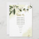 flores blancas y doradas hojas verdes tabla de asientos botánicos carta número de tabla Los detalles del purpurina y el Relieve metalizado se simulan