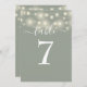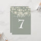 Estas elegantes tarjetas de números de mesa de dos caras con luces de cadena verde sabio son perfectas para todas las celebraciones. Diseñado por Thisisnotme©