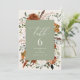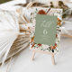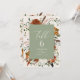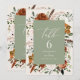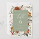 Arroz floral botánica de presupuesto, terracota, negro, natural y verde sabio rústico, elegante número de mesa decoración del día de boda. En el texto del guión de tendencia, parte de un conjunto de bodas coincidentes.