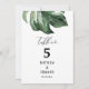 decoración del día de la boda en la mesa de palmas de color agua. En el texto del guión de tendencia, parte de un conjunto de bodas coincidentes.