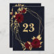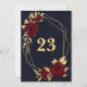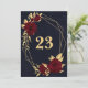Moda y elegante tarjeta azul marino con hermosas flores borgoñas y algunas elegantes hojas de oro sobre marco geométrico dorado. PARA OBTENER MÁS PRODUCTO COINCIDENTE, haga clic en la colección superior o póngase en contacto conmigo.