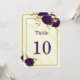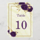 personalizable elegante número de tarjeta flores púrpura real con algunas hojas de oro tarjeta de número de tabla geométrica de oro