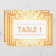 Estos números de tabla presentan un marco geométrico intrincado, patrones geométricos, una paleta de colores blanco y dorado y otros detalles estilísticos inspirados en el Art Deco y los años 2000. Puede personalizar de los campos de texto de ejemplo a su gusto.