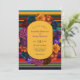 Audaz, festiva, luminosa y llena de encanto y elegancia modernos, esta invitación a la boda de marco de las modernas florals mexicanas captura la alegre esencia feliz de una fiesta de fiesta. El diseño, enmarcado con vibrantes flores de inspiración mexicana en ricos tonos rojos, naranjas, magenta y turquesa, se sitúa sobre un fondo a rayas de colores que recuerda a los patrones tradicionales de las seruvas. La tipografía limpia y contemporánea aporta un elegante equilibrio a los bonitos elementos vivos, haciendo de esta invitación perfecta para las parejas que quieren honrar la cultura con un toque fresco y moderno. Una manera sorprendente de marcar el tono para un día de boda alegre e inolvidable.