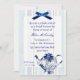 Invitación dulce de la ducha de la boda de la fiesta del té hecha en rayas en colores pastel pálidas con el texto azul. Un pote azul bonito del arco y del té adorna esta invitación de mirada elegante. Modifique el texto para requisitos particulares en frente y de nuevo a juego sus necesidades.