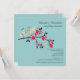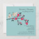 Comience su acontecimiento de la derecha con nuestra invitación nupcial de moda y moderna de la ducha que ofrece a un par lindo de pájaros de la novia y del novio en el amor que se sienta en una rama floral de la madreselva fijada en un fondo azul. Apenas modifique nuestra invitación nupcial de la ducha para requisitos particulares de los pares hermosos del pájaro con su información del boda y usted es todo fija para ir.