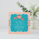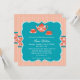 Invitación nupcial elegante con todo moderna de la ducha. Ofrece un pote del té y las tazas de té en la combinación de la turquesa, blanca y roja. Grande para una novia sofisticada. Esta invitación se puede utilizar para un fiesta de compromiso, un cumpleaños del jalón o un acontecimiento especial similar.