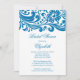 Comience su acontecimiento de la derecha con nuestra invitación nupcial de moda y elegante de la ducha del remolino floral azul y blanco fijada en un fondo blanco quebradizo. Apenas modifique nuestra invitación para requisitos particulares con su información del boda y usted es todo fija para ir. Disponible en otras combinaciones de color en nuestra tienda en www.celebrateitweddings.com. Compruebe hacia fuera nuestro hacer juego le agradecen las notas, los pegatinas y los botones nupciales en nuestra tienda