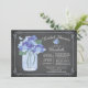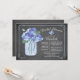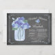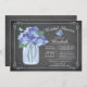 La invitación nupcial moderna de la ducha del tarro de albañil que ofrecía un tarro de albañil del país llenó de las flores azules y púrpuras fijadas en un fondo elegante de la pizarra con un acento floral y de la mariposa bonito y un marco caprichoso. Mueva de un tirón nuestra ducha nupcial invitan encima para ver una parte posterior que hace juego para un tacto especial adicional. Perfeccione para una ducha nupcial elegante del país rústico para la caída, el invierno, la primavera o la caída.