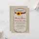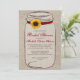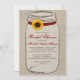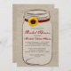 Esta invitación nupcial rústica de la ducha ofrece un fondo de la mirada de la arpillera con un esquema del tarro de albañil atado con la cinta roja y un acento del girasol. Perfeccione para un rústico, un vintage, o una ducha nupcial temática del país.