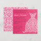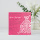 Invitación nupcial rosada de la ducha con el vestido de boda de encaje estilizado. Personalizar con su propio texto. Ilustracion original por el pj_design. Esta invitación nupcial del vestido de boda ofrece un vestido de boda de encaje altamente estilizado adornado con los lovebirds, las vides, y las bayas. El fondo es un modelo rosado del damasco. Ésta es una invitación muy formal que sería grande para una celebración de la tarde. Adornado con un modelo del damasco en la parte posterior.