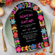 En esta moderna casa matrimonial de arco mexicano, audaz y vibrante, se respira un llamativo fondo negro que contrasta con un colorido marco floral pintado a mano inspirado en el arte folclórico tradicional mexicano. Ricos tonos de rojo, amarillo, rosa, naranja y turquesa que rodean la frontera, creando un diseño festivo y elegante. Los vivos florales enmarcan el área central de texto, haciendo que los detalles de tu celebración destaquen con sofisticación y estilo cultural. Perfecto para una pareja que busca infundir a su boda un color alegre y una elegancia moderna arraigada en la tradición.