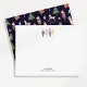 Elegant and festive Christmas note card featuring classic Nutcracker characters — the soldier, ballerina, and drummer — with a charming holiday-themed back pattern of trees, drums, and presents. Perfect for writing heartfelt holiday notes, thank-you messages, or pairing with Christmas gifts.