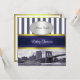 NYC Skyline Brooklyn Bridge, Boat Invitation Suite -Navy Blue White Stripe / Blue Gold Ribbon - Invitación Baby Shower Invitation Personalizable Invitaciones y accesorios con vistas al East River de la ciudad de Nueva York, el emblemático puente de Brooklyn y el edificio municipal con un barco que pasa cerca. También cuenta con un patrón de rayas azul marino y blanco, una cinta azul marino y dorada y una etiqueta de gradiente blanco con la elección de un marco de perlas color plata u oro. La imagen tiene un matiz azul y blanco. El reverso está enmarcado en oro. Este producto forma parte de un conjunto de diseños de correspondencia que son de fácil personalizable para muchas ocasiones y eventos. Si necesita tarjetas RSVP separadas que coincidan, notas de agradecimiento, sellos, imanes u otros accesorios, por favor revise nuestros otros listados. Si no ves un producto que te interese, o te gustaría ver este diseño en diferentes colores, con elementos de otros diseños, o con diferentes fotos de NYCisMyMuse que ves en nuestra tienda, por favor contáctanos y nos alegraremos de personalizar de un diseño para ti! Tenga en cuenta que se trata de un diseño gráfico y que no contiene telas, metales, gemas ni bordados reales. Todos los derechos reservados