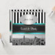 Invitación NYC Skyline BW Blk Wht Strp Verde azulado P Sweet