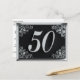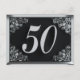 Tarjeta postal decorada con texto plateado y florituras ornamentales en esquinas con fondo negro para cumpleaños 50. Dependiendo del texto que ingrese, se puede utilizar como invitación o tarjeta de felicitación.