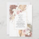 hojas de palma secas tropicales, pampas y orquídeas blancas invitaciones a la ducha de novias.
