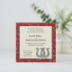 Una invitación occidental maravillosa hecha en un modelo rojo del pañuelo. La frontera alrededor de esta invitación cuadrada es un modelo rojo del pañuelo mientras que el centro es grisáceo y reservado para usted texto. Dos zapatos del caballo se sientan en la esquina inferior derecha. Grande para cualquier boda temático del país.