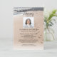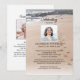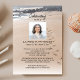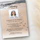 Una hermosa invitación de celebración de la vida para alguien que amaba el océano y caminar por la playa. La parte delantera presenta una foto de fondo de una playa tranquila con huellas en la arena. (Puedes reemplazar la foto de fondo con una tuya propia) Agrega fácilmente una foto de tu ser querido y detalles de tu celebración. La parte trasera ofrece espacio para una foto y un poema o escritura (o eliminar). La plantilla es muy fácil de usar y cambiar - crea una invitación única y hermosa que será atesorada por siempre.