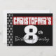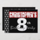 Invitación Octavo cumpleaños moderno para él rojo blanco negr