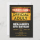 This “Warning Official Adult” 18th birthday invitation is a fun and edgy way to invite friends and family to celebrate your soon-to-be adult. Designed with bold dark tones and clean, modern graphics, it sets the perfect vibe for a cool, memorable party. Guests will love the clever theme and stylish look right from the start.