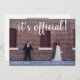 Esta invitación boda en blanco y negro es una gran manera de hacer saber a tus amigos y familiares que has eludido, tenido una ceremonia secreta o boda privado. La parte delantera de la tarjeta está diseñada para mostrar tu foto de orientación horizontal favorita, con las palabras '¡Es oficial!' en la parte superior en un tipo de guión blanco y bonito. Sus nombres, fecha de boda y ubicación aparecen en la parte inferior. La parte posterior de la tarjeta le permite escribir un saludo personal, y también incluye una foto de orientación vertical/vertical enmarcada en blanco y negro. Este es un diseño de plantilla, y es muy fácil de personalizar para satisfacer sus necesidades. NOTA DEL CREADOR: El "exceso de vello" en este producto es un efecto digital". Póngase en contacto con el diseñador para obtener productos coincidentes. Copyright Anastasia Surridge para Anastasia Designs, todos los derechos reservados.