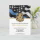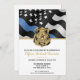 Honren la dedicación y el duro trabajo de un nuevo agente de la policía con esta invitación a graduarse de la policía personalizable. Con una insignia de la policía y una bandera de la fuerza policial con audaces rayas blancas y negras y una orgullosa delgada línea azul, este diseño simboliza fuerza, servicio y sacrificio. La invitación se personaliza con el nombre del graduado y los detalles de su fiesta, lo que lo convierte en un recuerdo memorable para amigos, familiares y colegas. Perfecto para celebrar la graduación, promoción o hito de una academia de policía en la carrera de un futuro oficial. Invite a sus invitados con estilo y muestre su apoyo al miembro más nuevo de la comunidad de la delgada línea azul.
