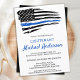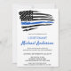 Ligeras invitaciones a la jubilación de la policía de la Línea Azul. Celebra años de servicio dedicado, e invita a amigos y familiares a tu fiesta de retiro de la policía con esta Invitación de retiro de la policía de bandera azul delgada. Diseño de la bandera estadounidense en los colores de la bandera de la policía, diseño moderno blanco negro y azul. Esta invitación a la jubilación de oficiales de policía también es perfecta para invitaciones a graduarse en la academia de policía, cambiar de lugar de personalización. Consulta nuestra colección para ver los regalos de jubilación de la policía, favores de la fiesta de retiro de la policía y suministros. DERECHOS RESERVADOS © 2021 Judy Burrows, Black Dog Art - Todos los derechos reservados. Invitación de oficial de policía de pabellón de retiro de la Línea Azul delgada